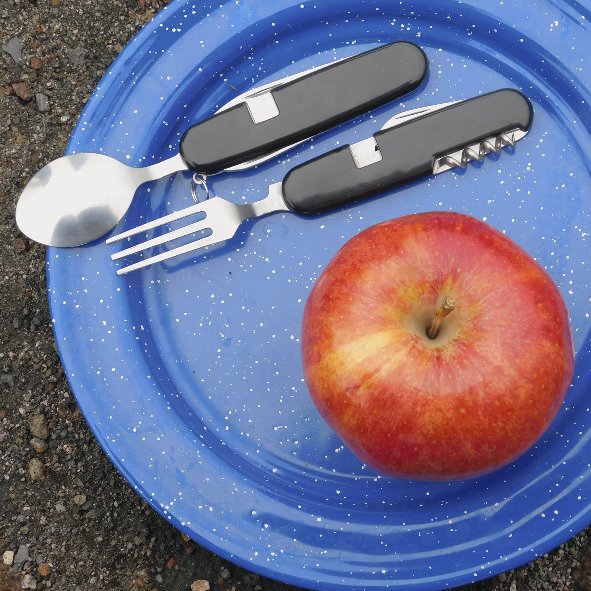 Cubiertos de acero inoxidable, con PVC negro. Puedes desprender el set en dos y utilizarlos cómodamente, después de usarlos guárdalos en su práctica funda para tenerlos siempre a tu alcance. Por su tamaño compacto, es ideal para actividades en el exterior, llevarlos a la escuela o a la oficina.