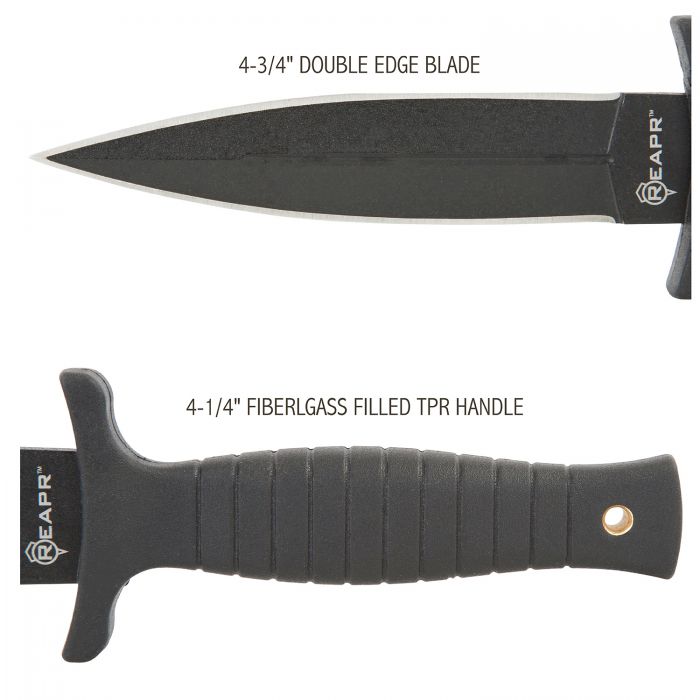 Siéntase preparado con el Reapr Tac Boot Knife, que ofrece una hoja de borde recto de doble filo. El mango está reforzado con fibra de vidrio y ofrece tecnología Hi-Grip resistente para ayudarlo a mantener un agarre firme en el cuchillo mientras realiza las tareas. 7.04 onzas. Longitud de la hoja de 4,75 pulgadas. Longitud total de 9 pulgadas. Incluye funda de poliéster. Hecho en EE.UU.