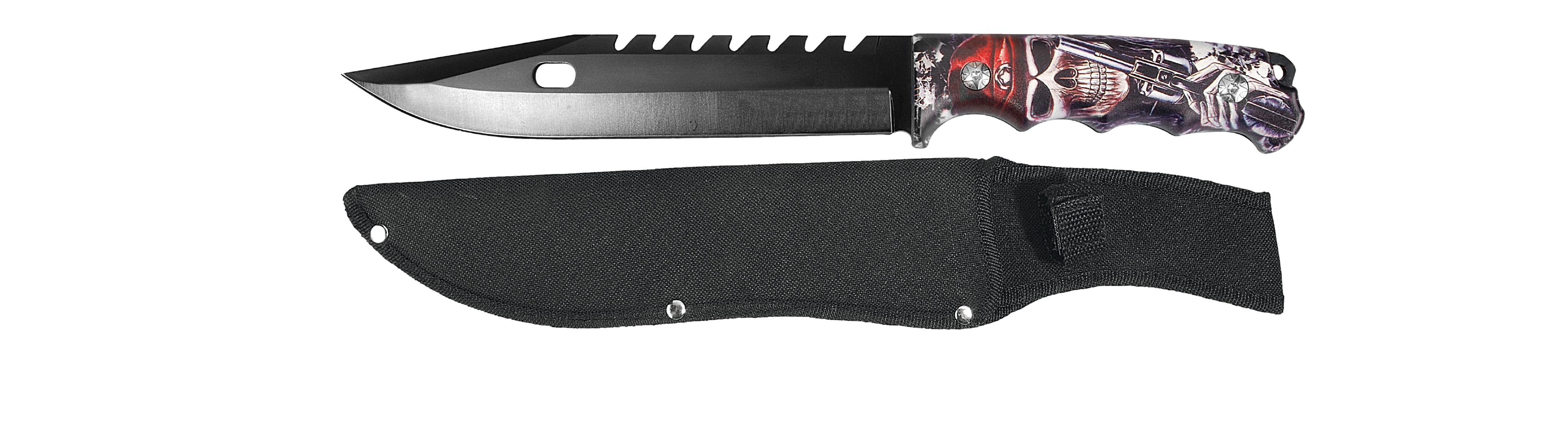 Acero inoxidable 420 Hoja: 203, 2 mm Mango: 130 mm Mango calavera Funda de nylón