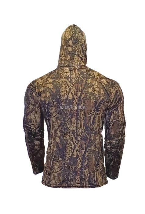 Ya sea que estés buscando comodidad durante tus aventuras al aire libre o simplemente desees añadir un toque de estilo a tu guardarropa, nuestra playera manga larga con capucha es la elección perfecta. Su tela brush de poliéster y elastano, junto con su diseño de camuflaje de ramas, te brindarán una experiencia de uso agradable y un aspecto atractivo.