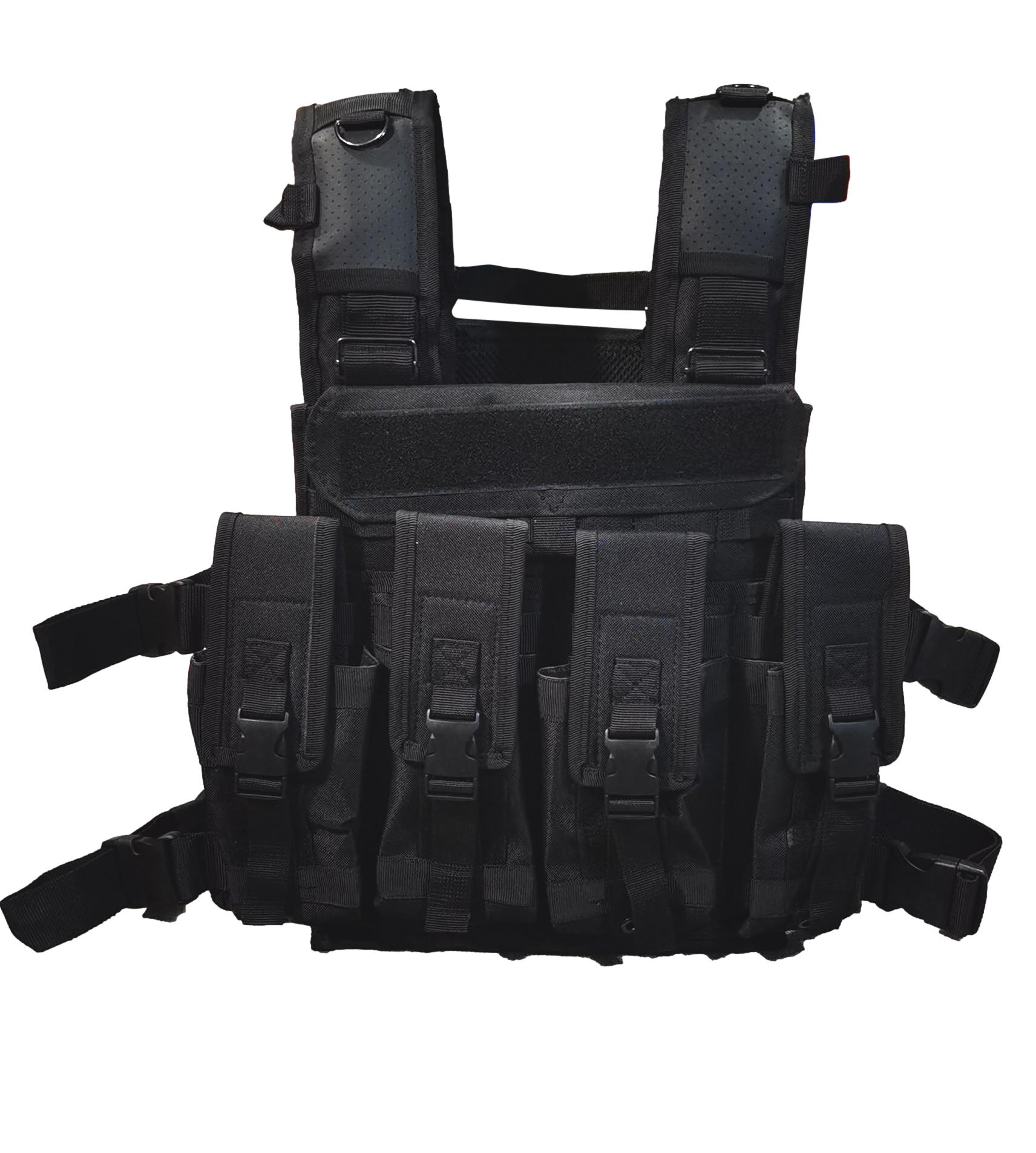 Portaplacas fabricado en nylon de alta resistencia, 4 bolsas porta cargadores integrados