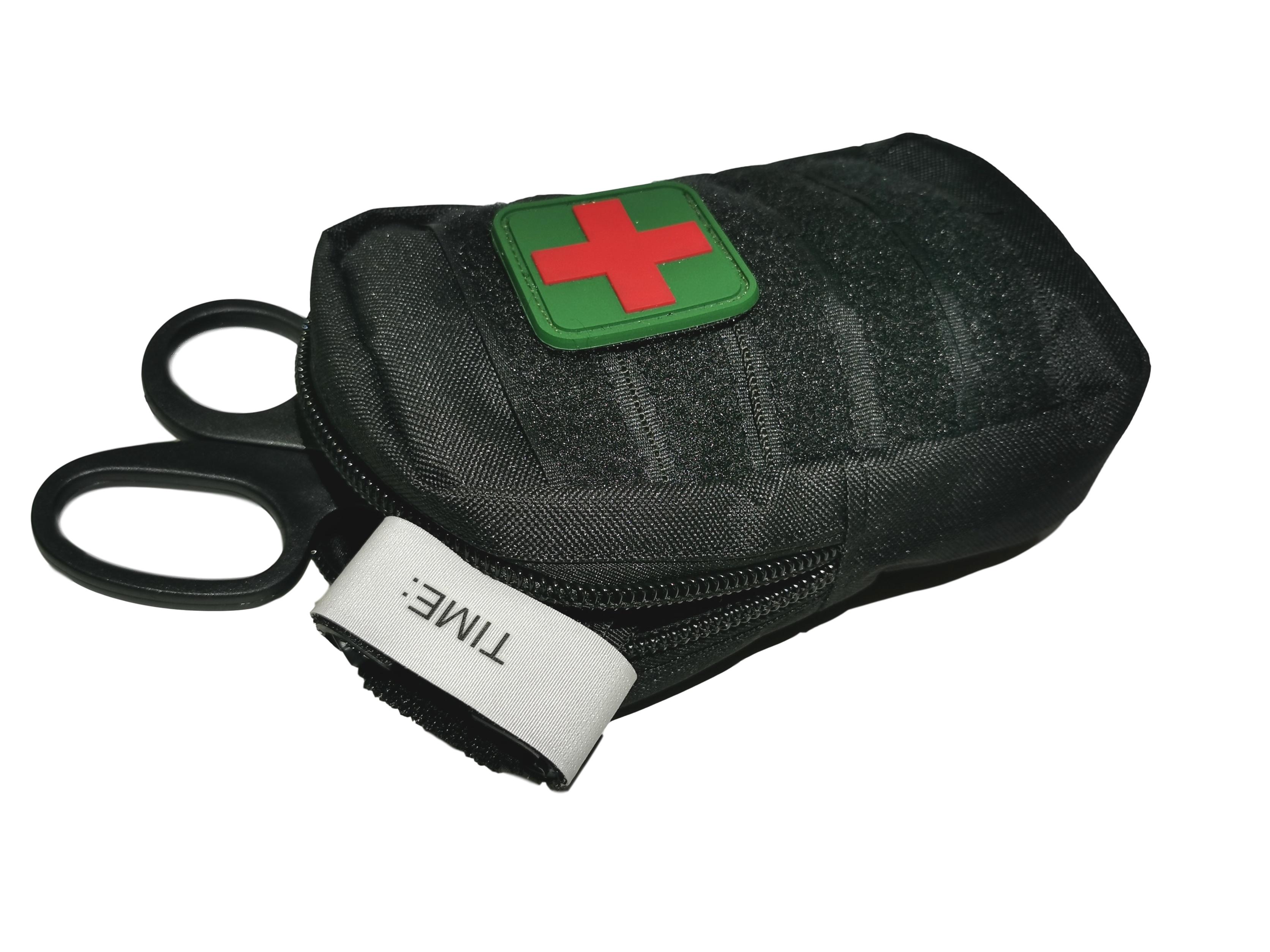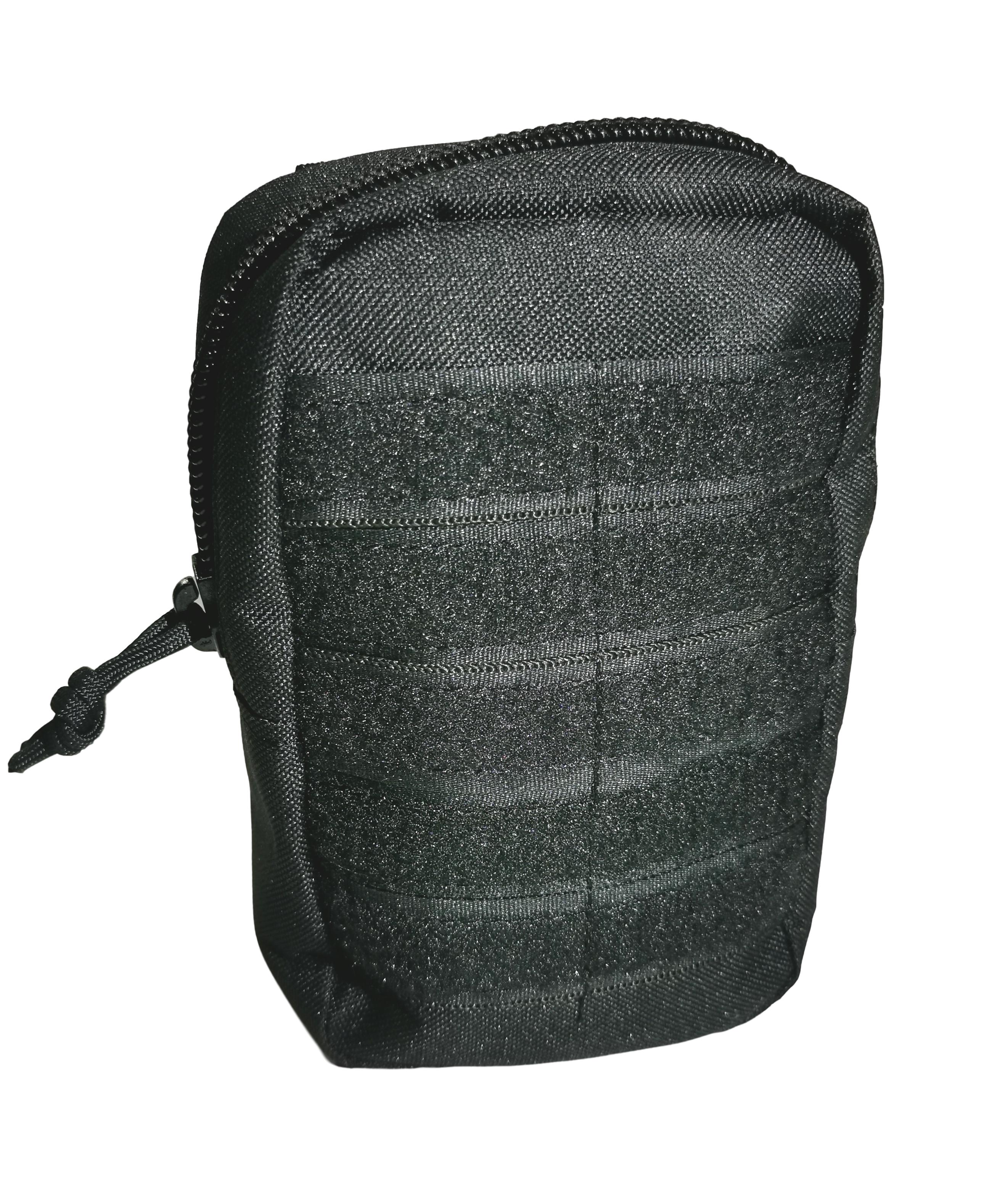 Pouch táctico vertical, fabricado en Nylon, incluye contactel en el frente para colocar parches y sistema modular en la parte trasera