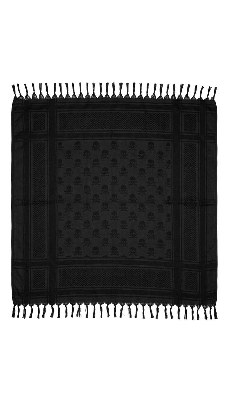 Lleva tu estilo al siguiente nivel con nuestra Shemagh Táctica de Edición Especial, que fusiona el diseño tradicional de medio oriente con un patrón moderno de calaveras y huesos cruzados. No es solo un accesorio de moda, es una herramienta versátil diseñada para quienes viven al límite, desde entusiastas del outdoor y airsoft, hasta viajeros urbanos con estilo rebelde.